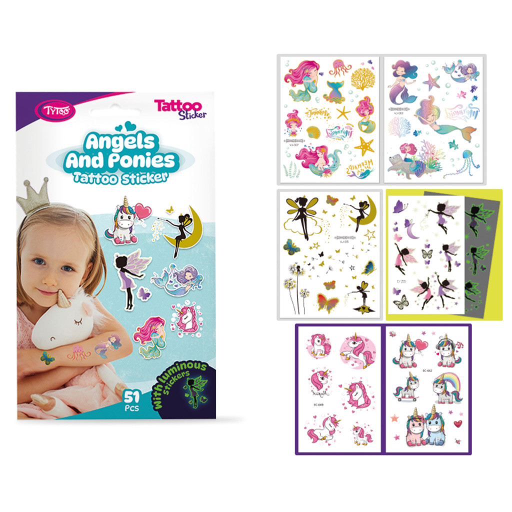 Angyalok és pónik tetoválás matrica szett - 51 db / csomag