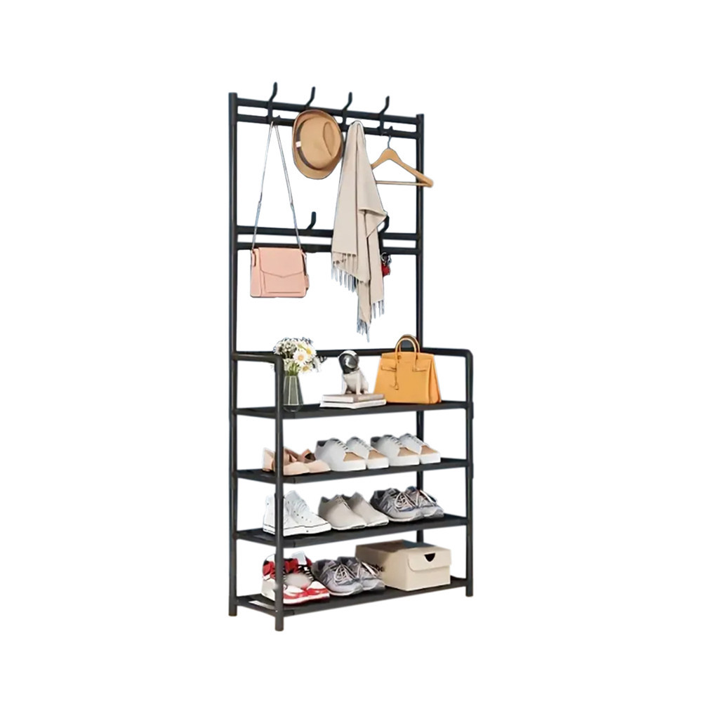 A 4 szintes kialakítás lehetővé teszi, hogy minden ruhadarabot, cipőt és kalapot rendezetten tárolj. Az alsó polcok ideálisak cipők számára, míg a felsőbb szintek tökéletesek kalapok és egyéb kiegészítők tárolására. Az állvány könnyen összeszerelhető és kompakt méretének köszönhetően kis helyeken is elfér.