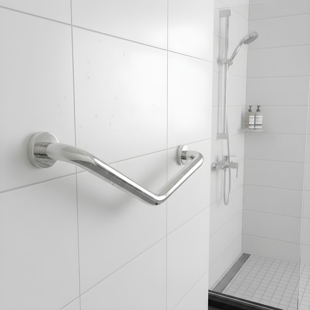 Ez a 45°-ban hajlított falra szerelhető kapaszkodó praktikus és biztonságos megoldást nyújt a fürdőszobában és WC-ben. Kiváló választás illemhelyek akadálymentesítéséhez. Megkönnyítheti a kádba belépést az idősebb korosztálynak, terhes nőknek, mozgásában korlátozott személyeknek, illetve a gyerekeknek is. Rozsdamentes acélból készült, krómozott felülettel, így könnyen tisztítható, mégis esztétikus. A csomag minden szükséges szerelési tartozékot tartalmaz.