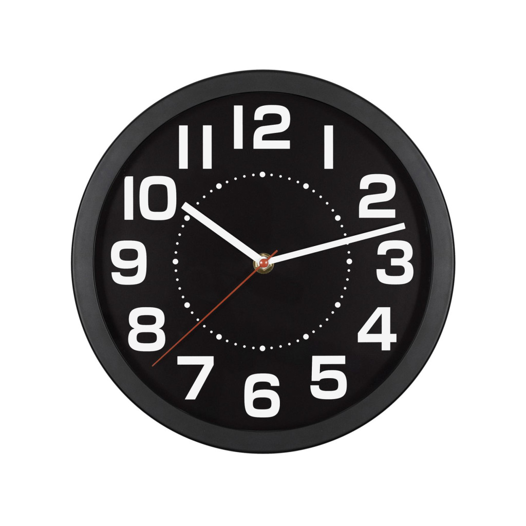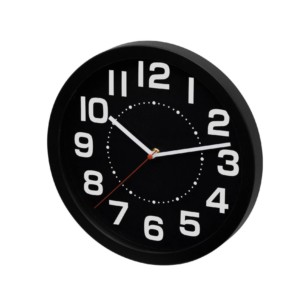 A 250 mm átmérőjű óra számlapja nagy, kontrasztos számokkal készült, amelyek még távolról vagy oldalról is könnyen és gyorsan leolvashatók. Az élénk piros másodpercmutató külön kiemeli a mozgást, így az idő mindig pontosan észlelhető, akár sietős reggeleken, akár csendes délutánokon.