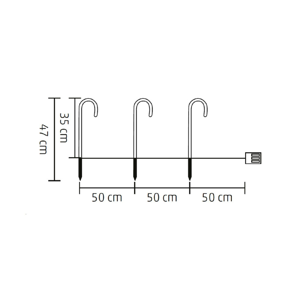 A világítási mód állandó, a beépített 6 órás be- és 18 órás kikapcsolási időzítő pedig kényelmes és energiatakarékos működést tesz lehetővé. A szett tápellátását 3 db 1,5V (AA) elem biztosítja, melyek nem tartozékok. A cukorbotok teljes magassága 47 cm, a leszúrótüske aljáig, míg maguk a cukorbotok 35 cm magasak. A karók közötti távolság 50 cm, és a tápkábel is 50 cm hosszú, így könnyedén elhelyezheti őket bárhol.