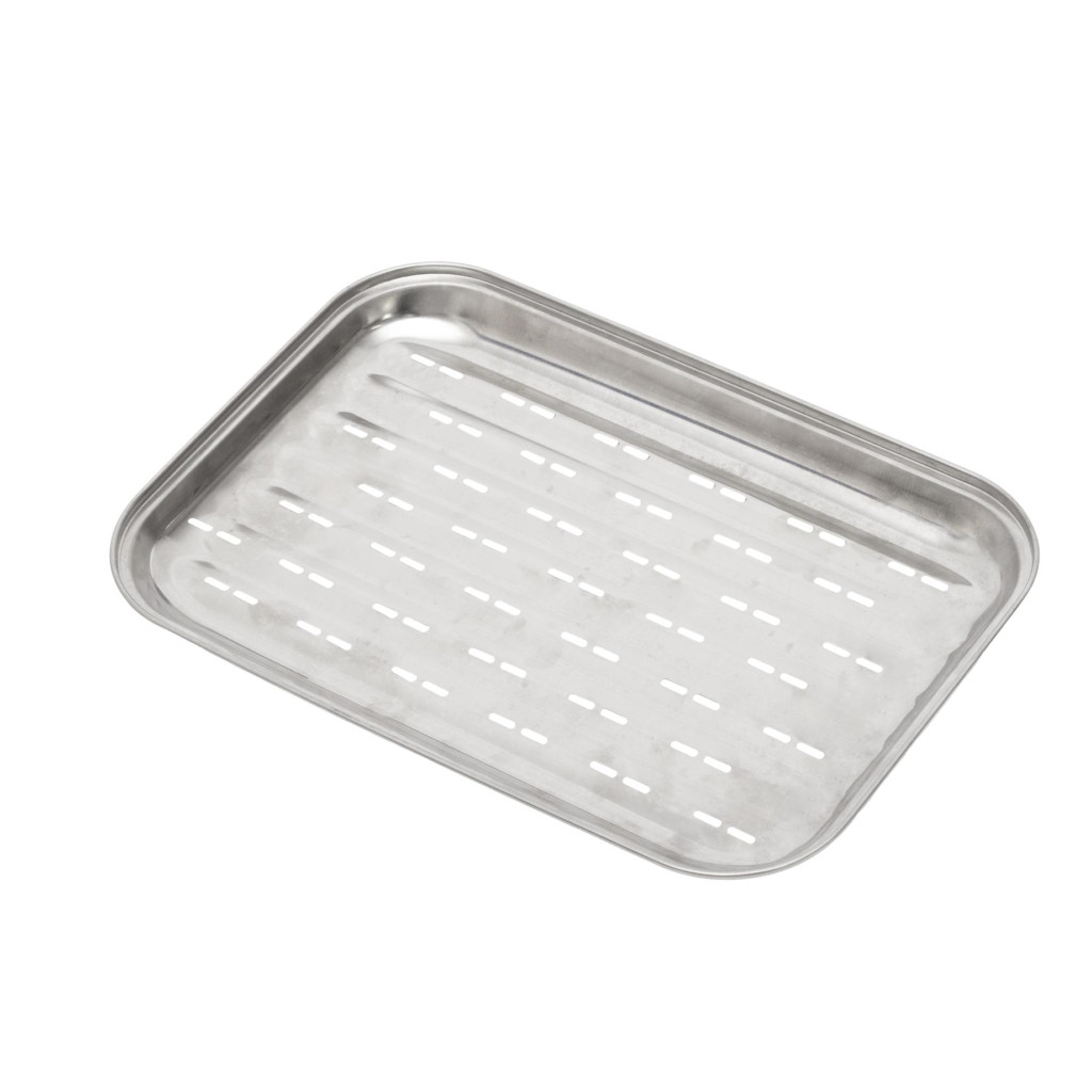 A rozsdamentes acélból készült tálca tartós és hőálló, így hosszú távon is megbízható társ minden grillező számára. Perforált felülete gondoskodik arról, hogy a felesleges zsír és nedvesség lecsorogjon, ezáltal az ételek kívül ropogósak, belül pedig szaftosak maradnak – ráadásul kevesebb füst és lerakódás keletkezik a grillben, így a takarítás is könnyebb.