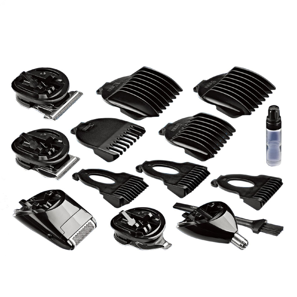 Ez a kiváló minőségű készlet 5 cserélhető fejet kínál: egy széles, egy normál, és egy precíziós vágófejet, továbbá orrszőrnyírót és borotvát. Ezen kívül 7 különböző műanyag fésűt is talál a csomagban, melyekkel a haját 3, 6, 9, 12 mm-es hosszúságúra, illetve a szakállát 4, 6, 8 mm-es hosszúságúra nyírhatja.