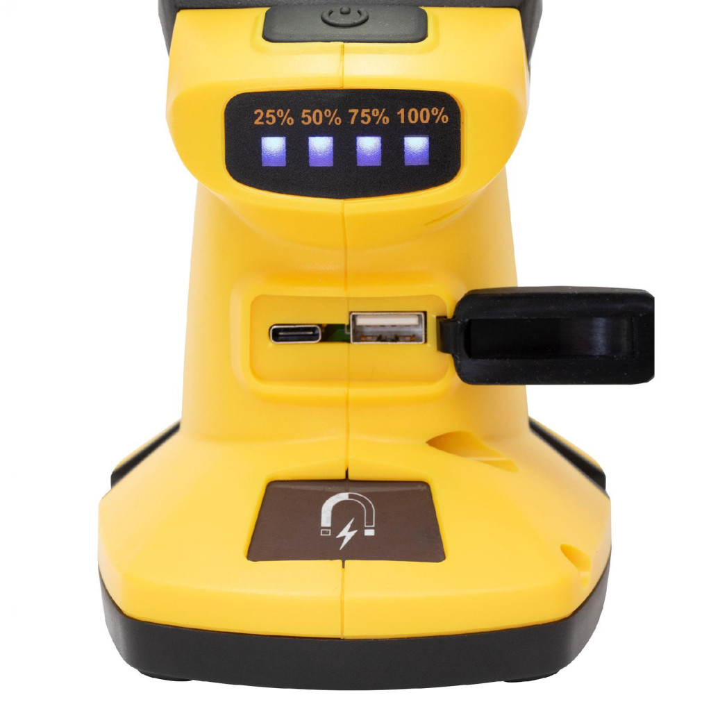 Töltés közben is világíthat, így nem kell aggódni az időszakos sötétség miatt. A PowerBank funkció révén a lámpa képes mobil eszközök töltésére is, így mindig kéznél van egy megbízható energiaforrás. A lámpa könnyedén mágnesesen rögzíthető, felakasztható vagy hordozható, így rendkívül rugalmasan használható különféle munkakörnyezetekben. Az USB-C töltőkábellel gyorsan és egyszerűen feltölthető, a teljes töltési idő körülbelül 6 óra.