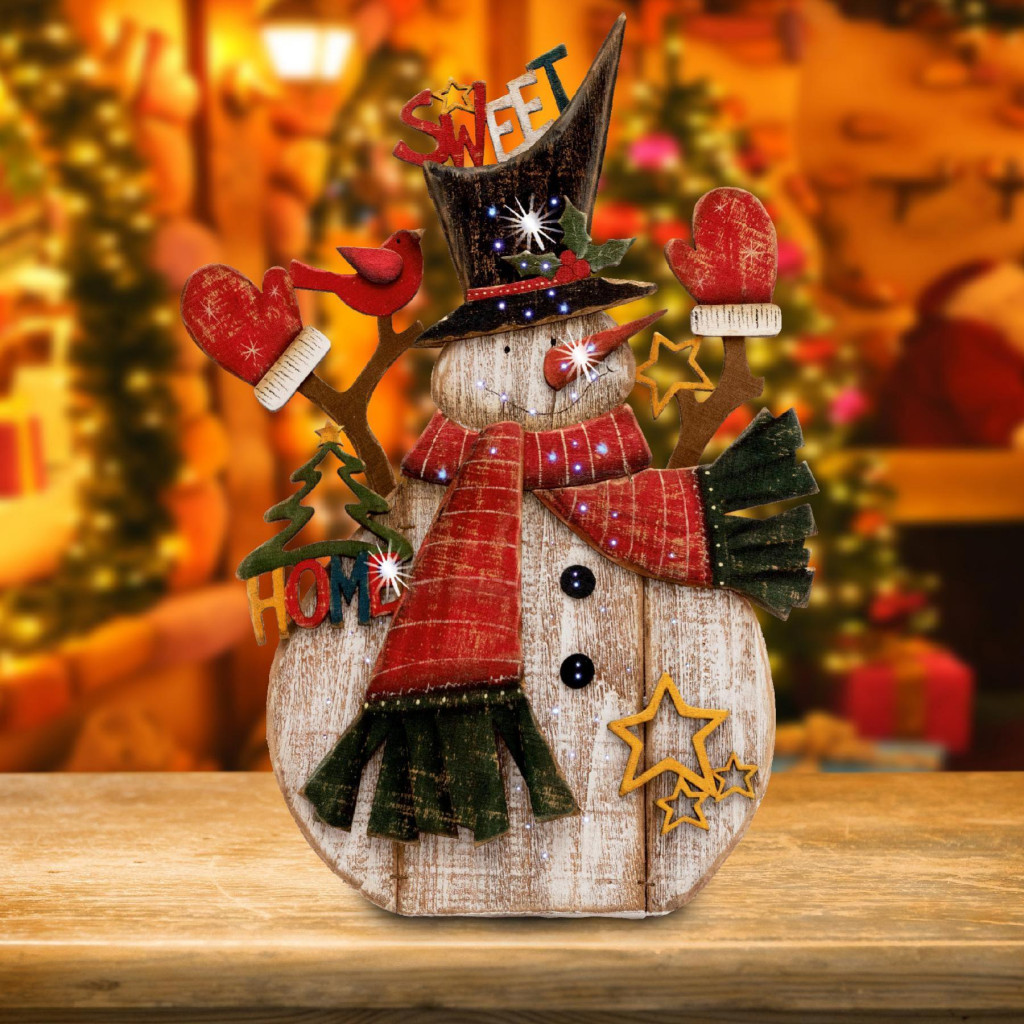 Egy igazán egyedi és vidám díszt keres az ünnepi asztalra? A KAD 34 optikai szálas asztali dísz tökéletes választás minden otthonba! A dísz egy kedves hóember figurát ábrázol, amely egy festett fa dekoráció és színes, villogó fénypontok díszítik, amelyek garantáltan feldobják a karácsonyi hangulatot.