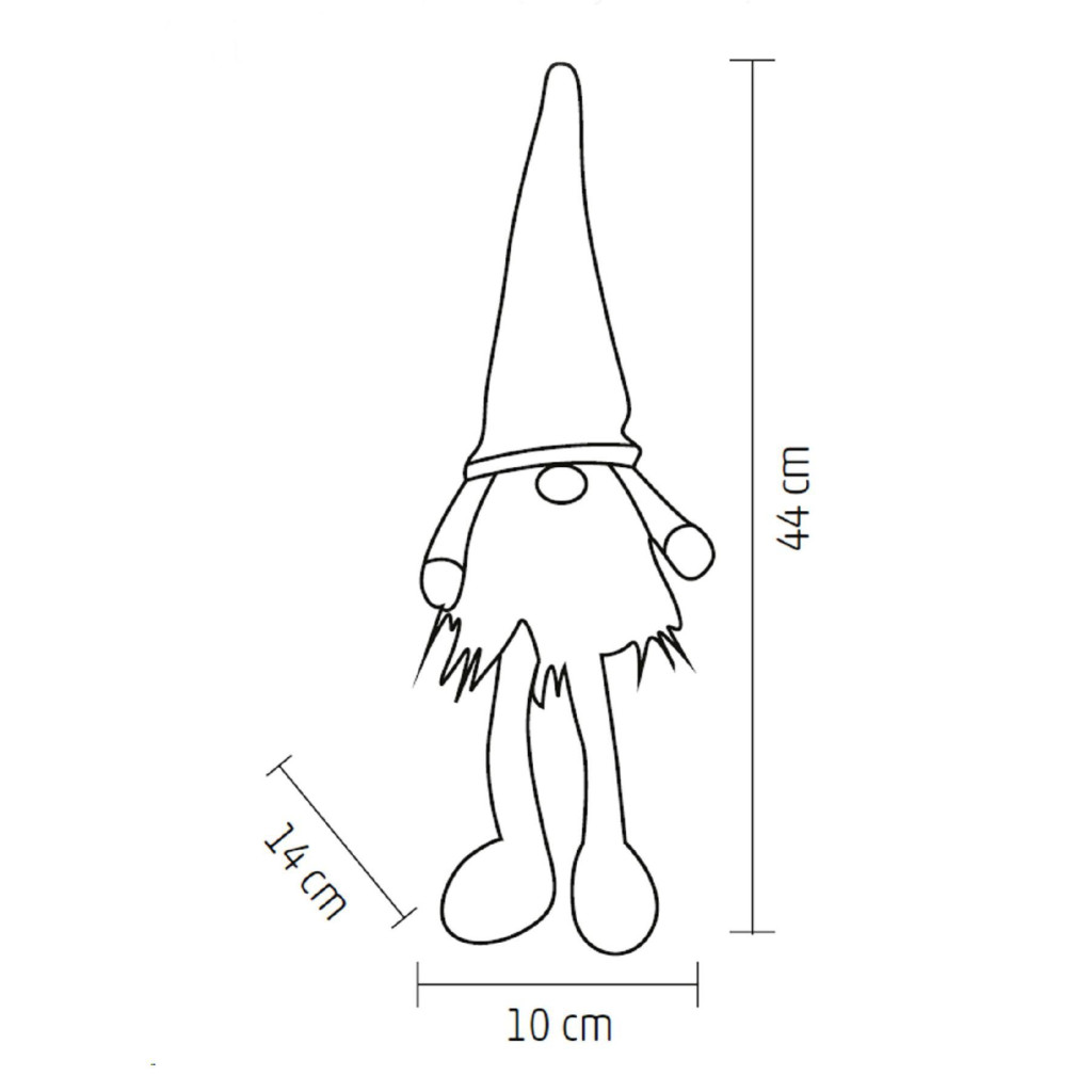 Vidám megjelenésével és lógó lábaival ez a manó igazán különleges dekoráció, amely bármelyik polcra vagy ablakpárkányra helyezve barátságos kiegészítője lesz otthonának. A be/ki kapcsolóval egyszerűen kezelhető, így mindig kényelmesen szabályozhatja a világítást. A manó tápellátása 2 darab 1,5V-os AA elemmel működik (nem tartozék), ami teljes mozgási szabadságot ad, így bárhol elhelyezheti, anélkül, hogy a vezetékek korlátoznák. Kompakt méretének köszönhetően (10 x 14 x 44 cm) bármilyen helyiségbe tökéletesen illik, legyen az nappali, hálószoba vagy akár az előszoba.