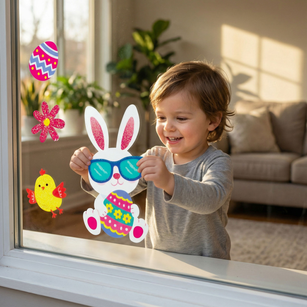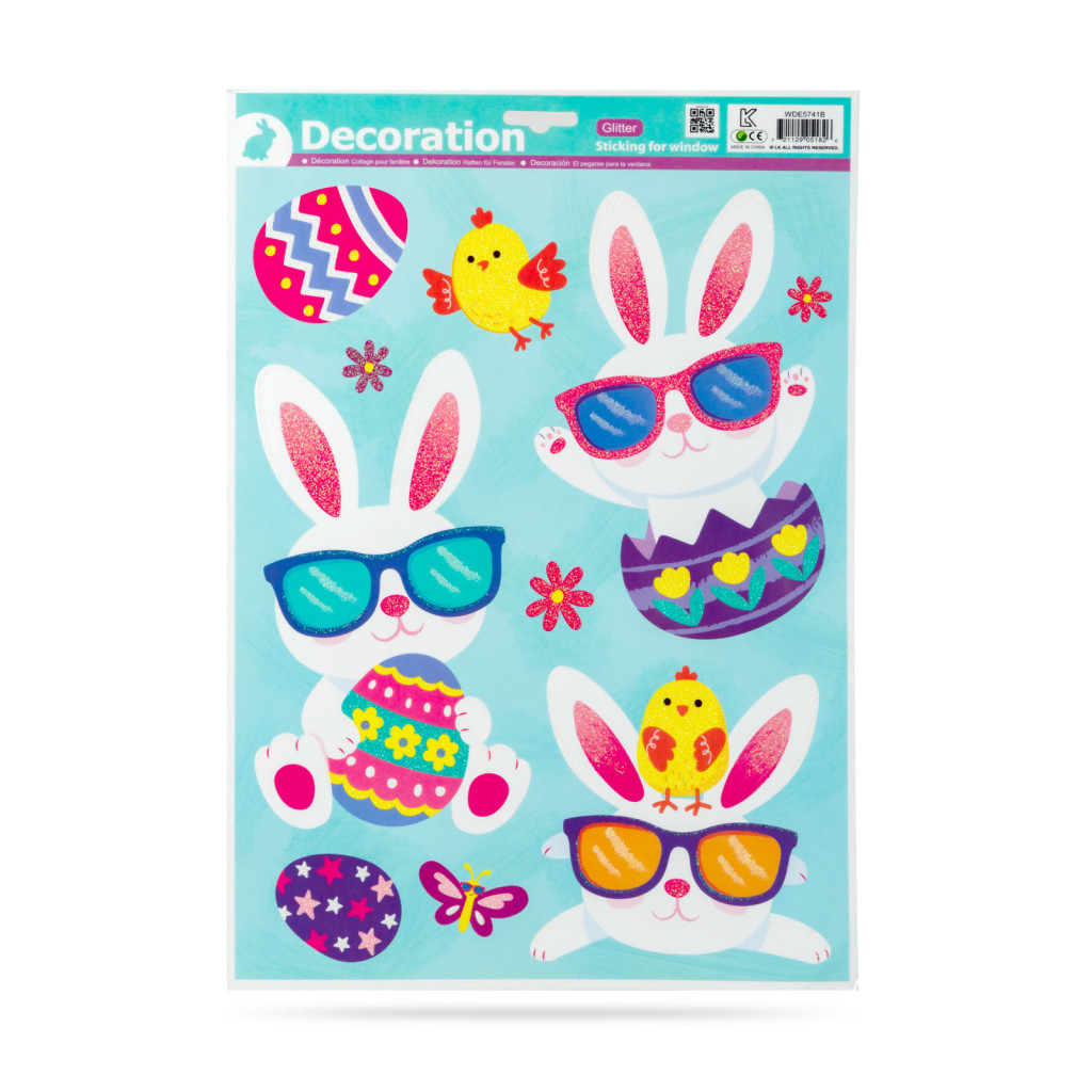 Tegye még vidámabbá otthonát a húsvéti ünnepek alatt ezzel a csillámos ablak matricával! 43 × 30 cm-es lapot tartalmaz, amely színes nyuszikat, virágokat, tojásokat ábrázolnak. A matrica könnyen felhelyezhetők üvegfelületekre, ablakokra, tükrökre, és ugyanilyen egyszerűen el is távolíthatók. A csillámos részleteknek köszönhetően különösen hangulatos fényhatást keltenek, így remek választás ünnepi dekorációhoz, gyerekszobába vagy nappaliba.