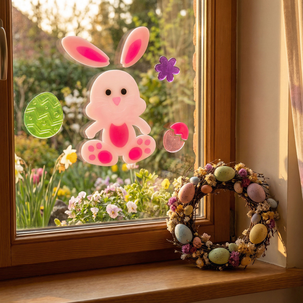 Hozza ünnepi hangulatba otthonát ezzel a bájos húsvéti gélmatrica szettel, amely aranyos nyuszi motívummal, színes tojásokkal, virágokkal díszíti otthonát. A puha, 3D hatású matricák könnyedén felhelyezhetők bármilyen sima, tiszta felületre, például ablakra, bútorra vagy ajándékcsomagolásra. Élénk színeinek és kedves formáinak köszönhetően gyerekbarát dekoráció, amely mosolyt csal az egész család arcára.