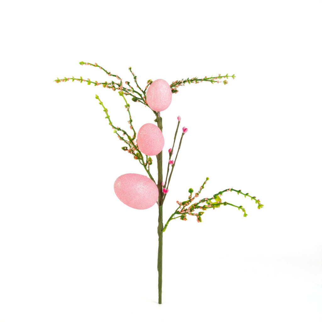 Dobja fel húsvéti dekorációját ezzel a csillogó tojásfa ággal! Az ág vidám, színes tojásokkal díszített, amelyek csillámos bevonatuknak köszönhetően különleges fényt adnak a kompozícióknak. Kétféle színben kapható, így könnyen kombinálható más ünnepi dekorációkkal. Ideális választás vázákba, kosarakba, asztali díszekbe vagy akár húsvéti tojásfákhoz.
