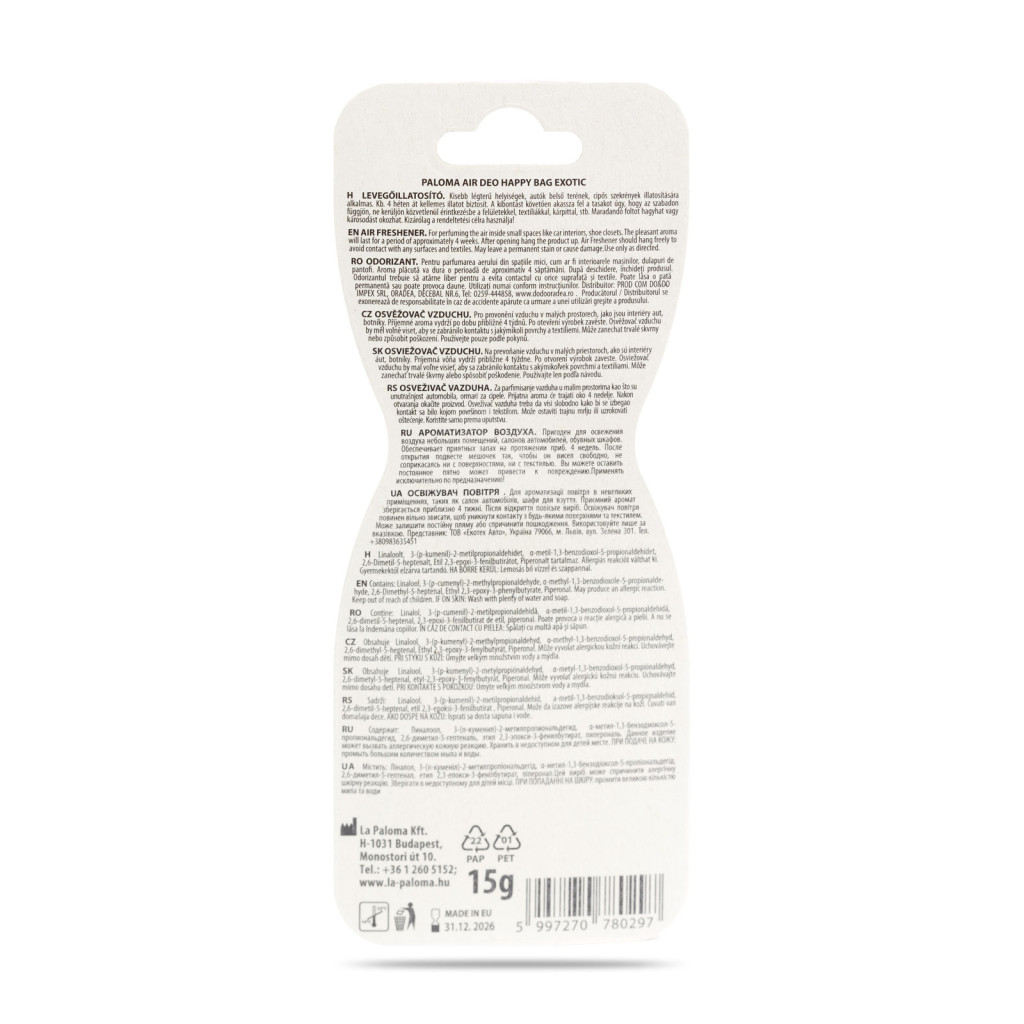 Ízléses kis tasak. A tasak belsejében illatgolyócskák találhatók, melyek több hétig kifejtik hatásukat. Használható lakásban, autóban.