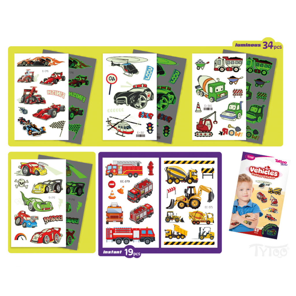 Minden ami autó! Könnyen felvihető, egyszerű és látványos tetkók, járműves mintákkal, szettben. Az igazi járgány fanatikus gyerekeknek. Ezek az ideiglenes tetoválás matricák kiváló minőségűek, így hosszabb ideig, napokig is megőrzik élénk színüket és részletgazdagságukat. Könnyen felhelyezhetőek és eltávolíthatóak, anélkül hogy irritálnák vagy károsítanák a bőrt. 53 db Járműves matrica tetoválás 6 db íven sport autók, világítós autók, munkagépek, tűzoltók, rendőrautók. Minden, ami jármű!