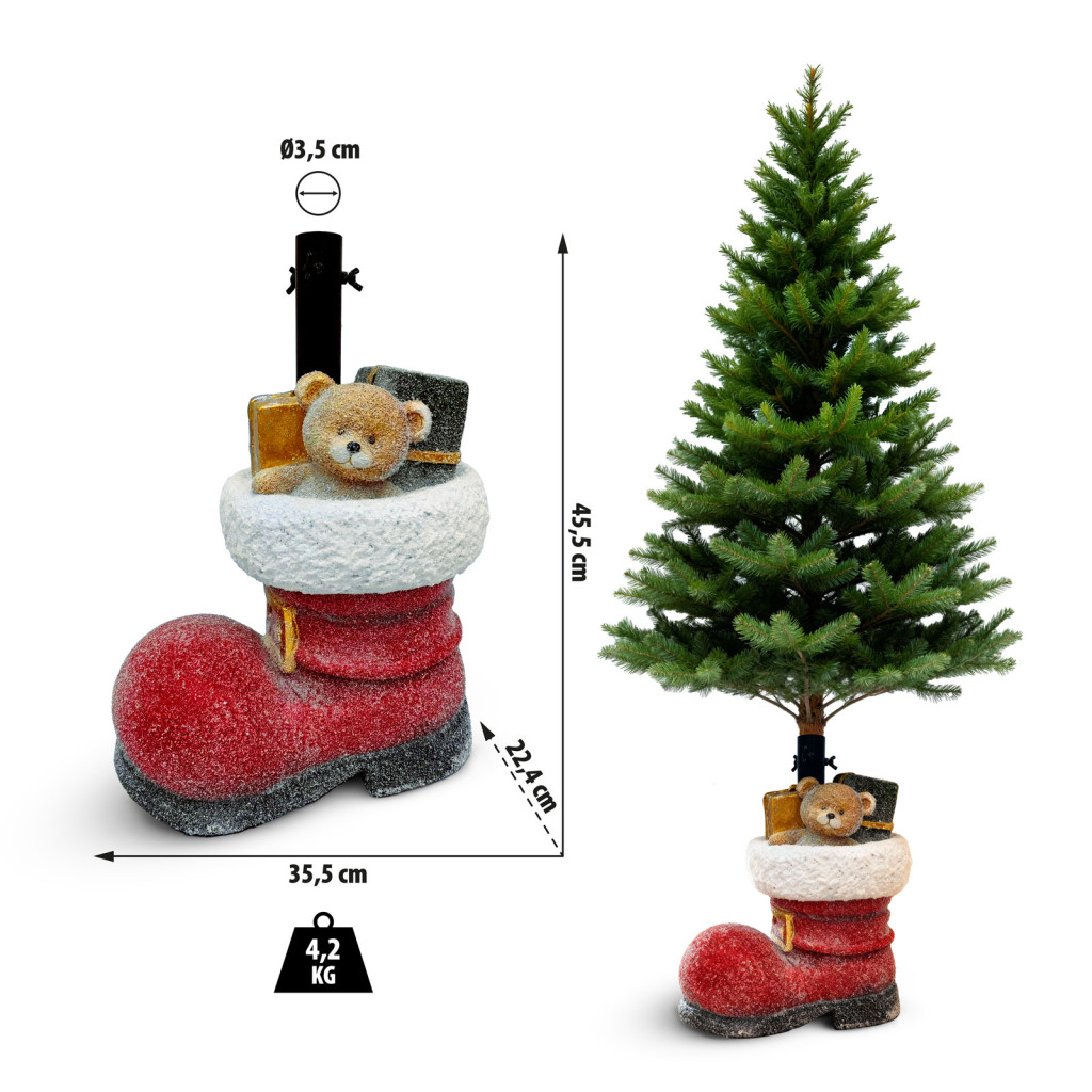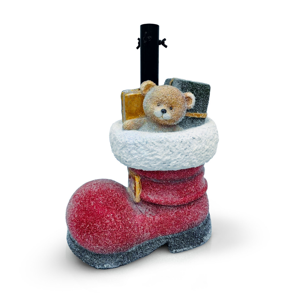 Egyedi, „csizma” formájú műkő karácsonyfatalp, amely egyszerre stabil és dekoratív. Tökéletes választás, ha a karácsonyfát igazán hangulatos és biztonságos talapzatra szeretnéd helyezni.