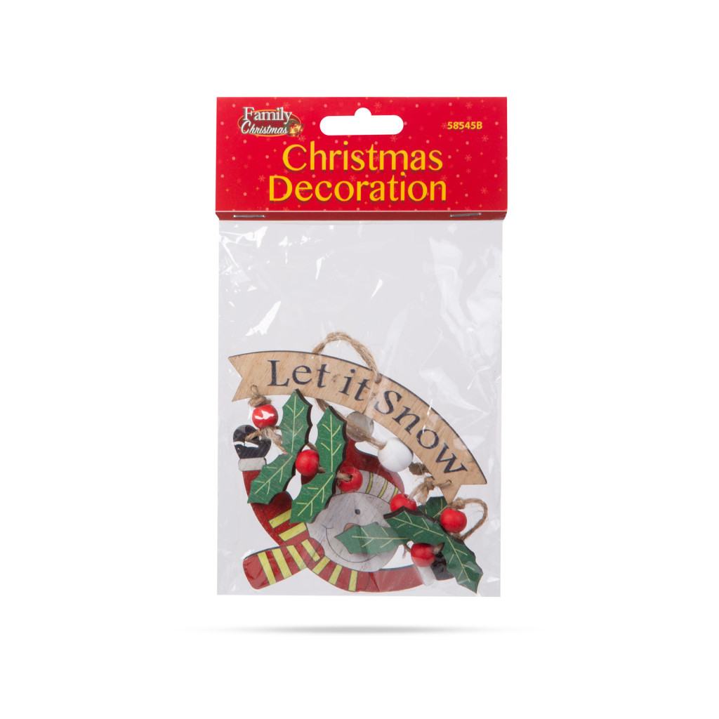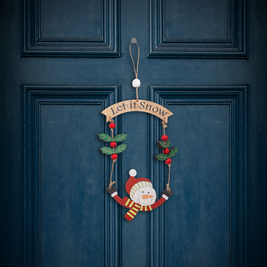 Ez a gyönyörű fából készült hóember figura tökéletes kiegészítője lehet a karácsonyi dekorációnak otthonában. A figura egy szépen kidolgozott hóember alak, amely bogyókkal és "Let it snow" felirattal van díszítve, ami az ünnepi hangulatot és vidámságot sugallja. A fából készült díszek, melegséget és természetességet kölcsönöznek bármilyen ünnepi dekorációnak. A kidolgozott, részletesgazdag festés gondoskodik az aprólékos és szemet gyönyörködtető megjelenésről. A figura egy erős, de könnyű fából készült darab, amely felakasztható az otthona különböző pontjain.