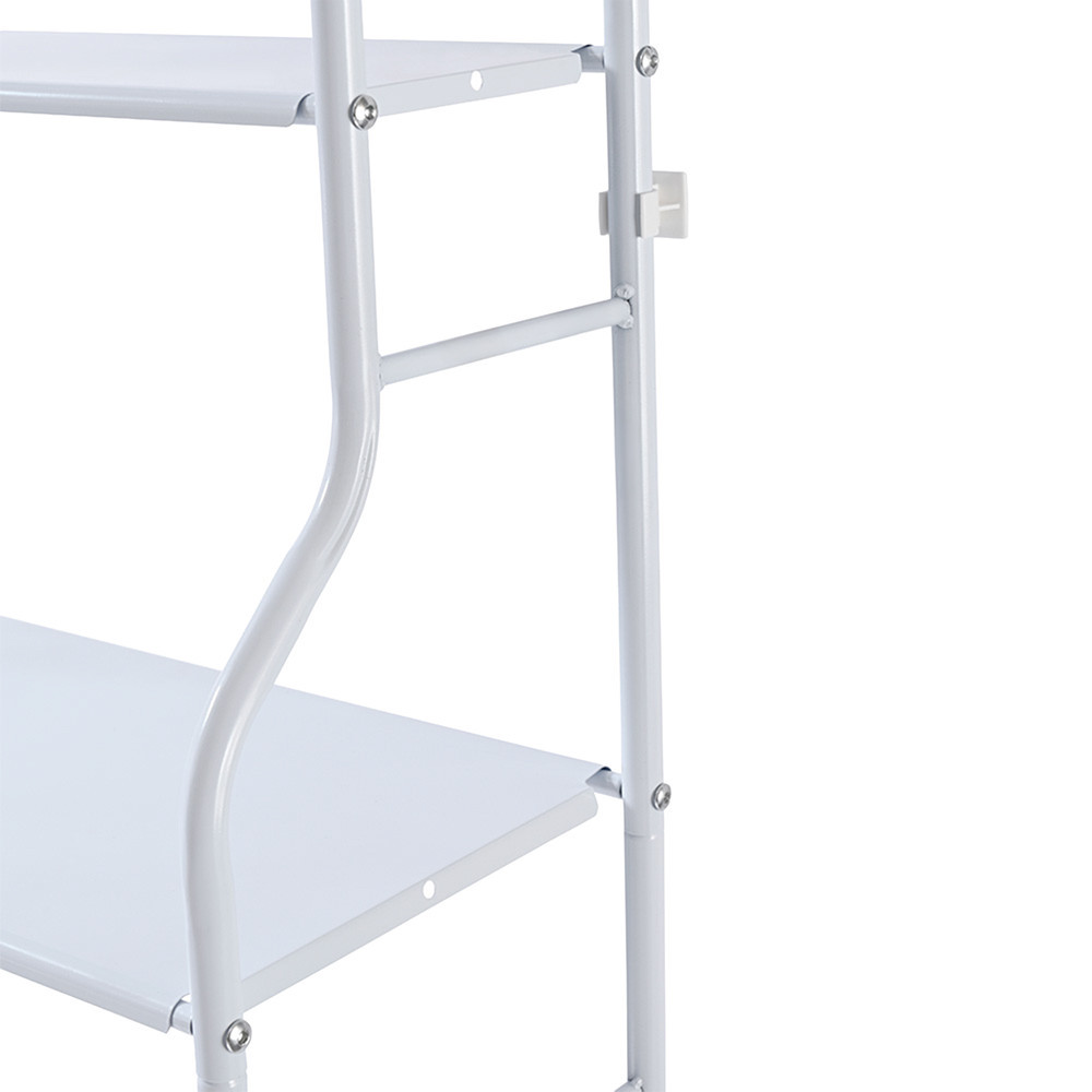 • Többszintes kialakítás: Három polccal rendelkezik, amelyek lehetővé teszik különböző méretű és típusú mosószerek, tisztítószerek és egyéb kiegészítők rendszerezett tárolását. A mosógép feletti extra hely kihasználásával további tárolóhelyet biztosít, ahol mosószert, sampont, tusfürdőt stb. tárolhatsz.