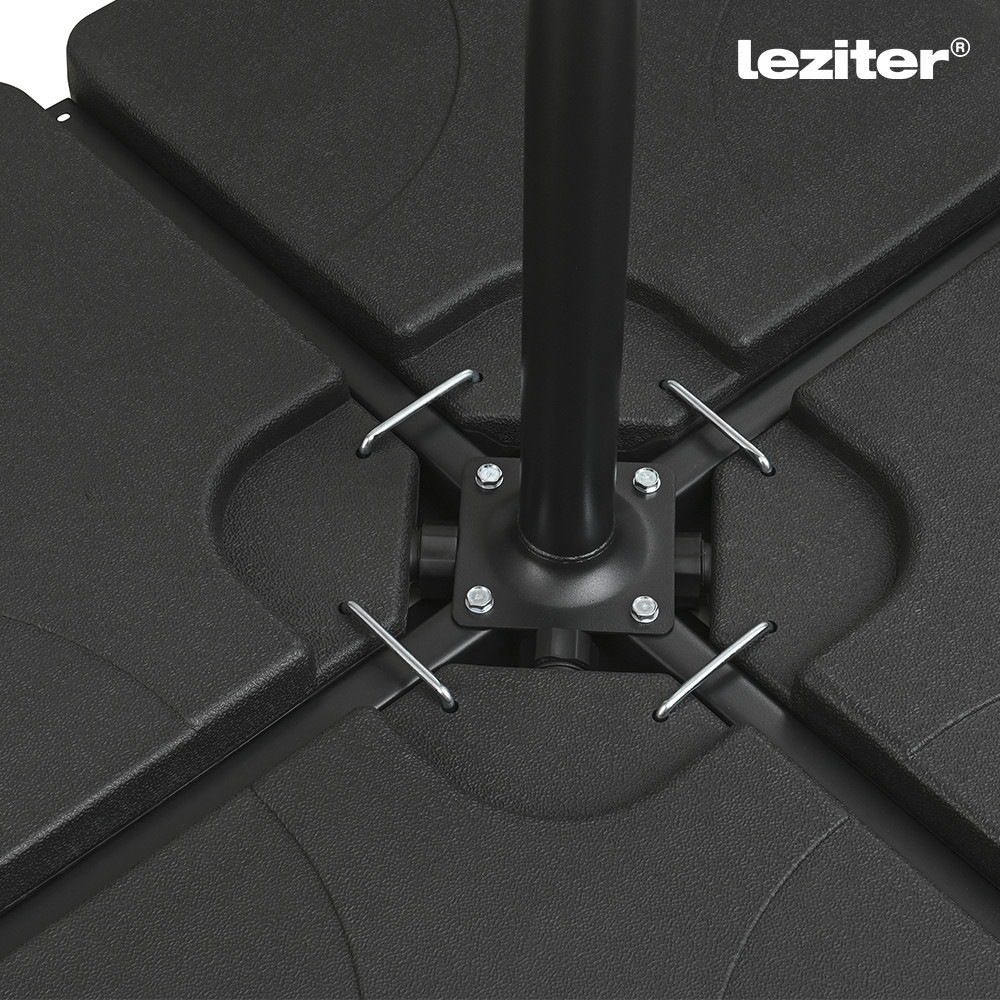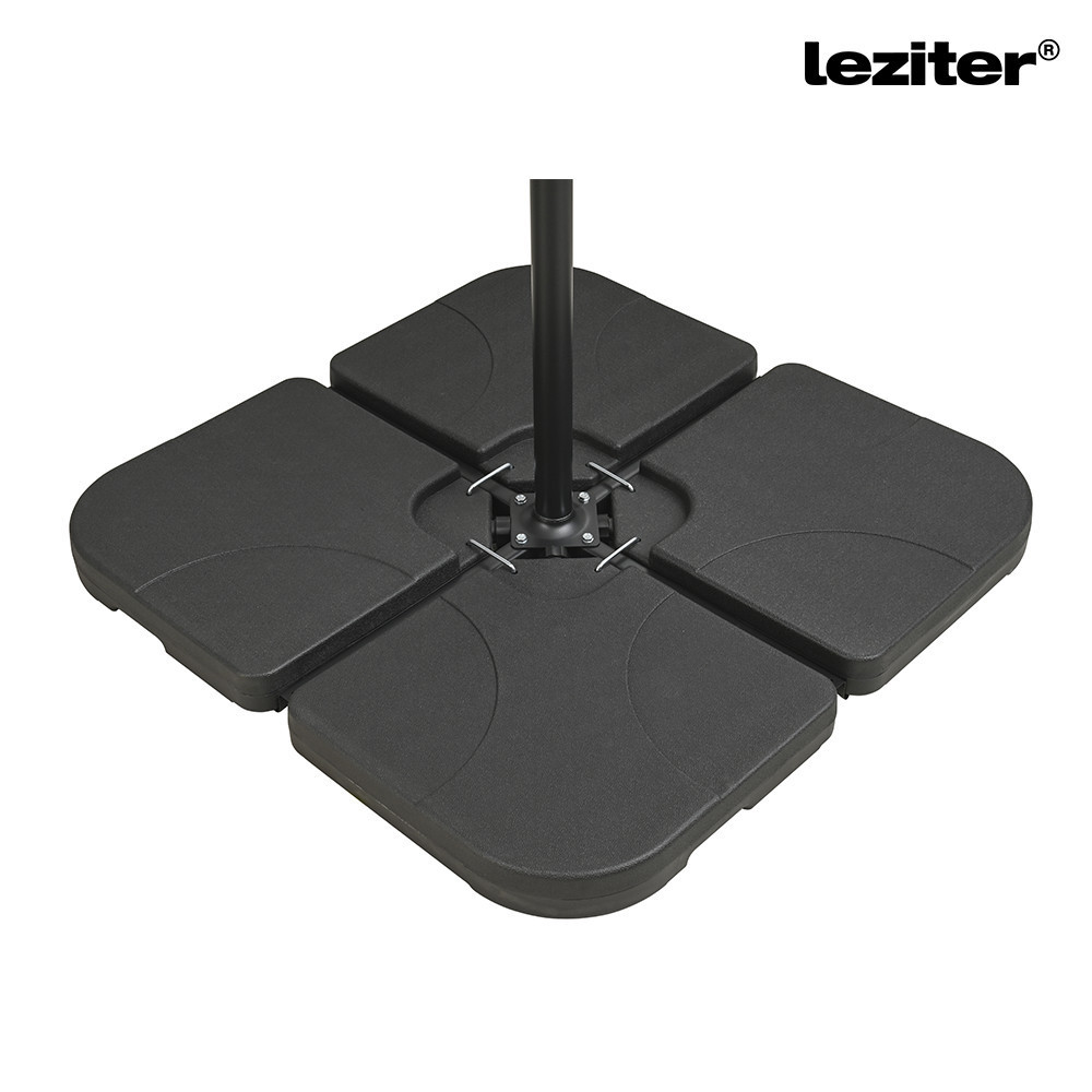 A Leziter Napernyőtalp 4×15 L négy különálló elemből álló, súlyozható megoldás kerti napernyők stabil rögzítéséhez. Az elemek vízzel vagy homokkal tölthetők, így a szükséges terhelés a használati környezethez igazítható. Lapos kialakítása diszkréten illeszkedik teraszokon és kerti burkolatokon, a szett kialakítás pedig megkönnyíti a mozgatást és az elhelyezést.