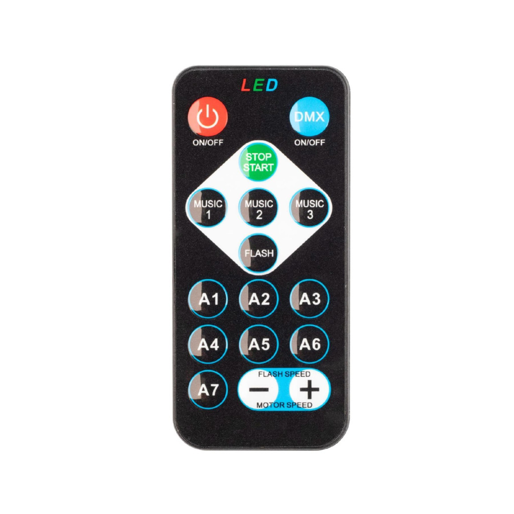 - Álló vagy forgó fényeffektek, szabályozható sebességgel