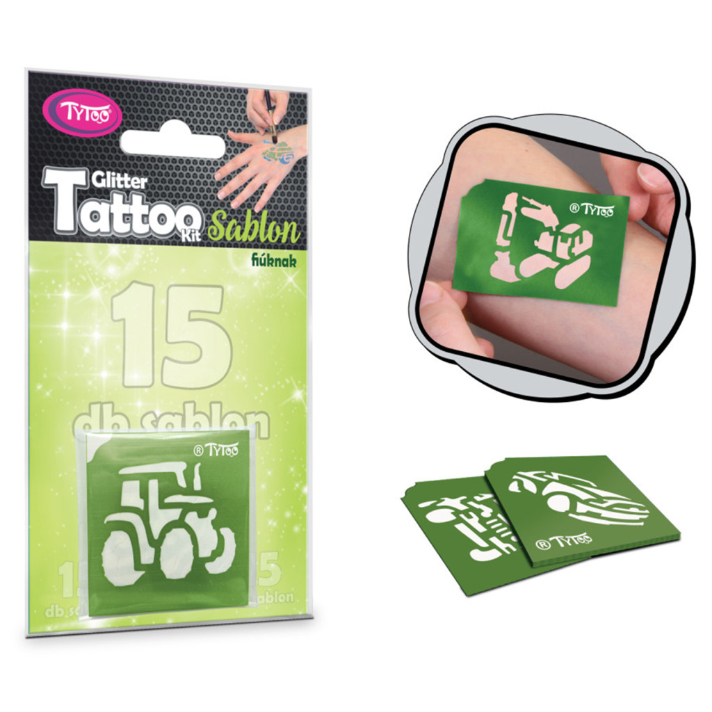 A sablon szett 15 db, gyerekeknek készült járműves mintát tartalmaz, melyeket használhat csillámtetováláshoz, vagy egyéb testfestéshez. Olyan slágermintákat kap egy csomagban, mint a markoló, kamion, tank, dömper, melyek biztos örömet szereznek a gyerekeknek.