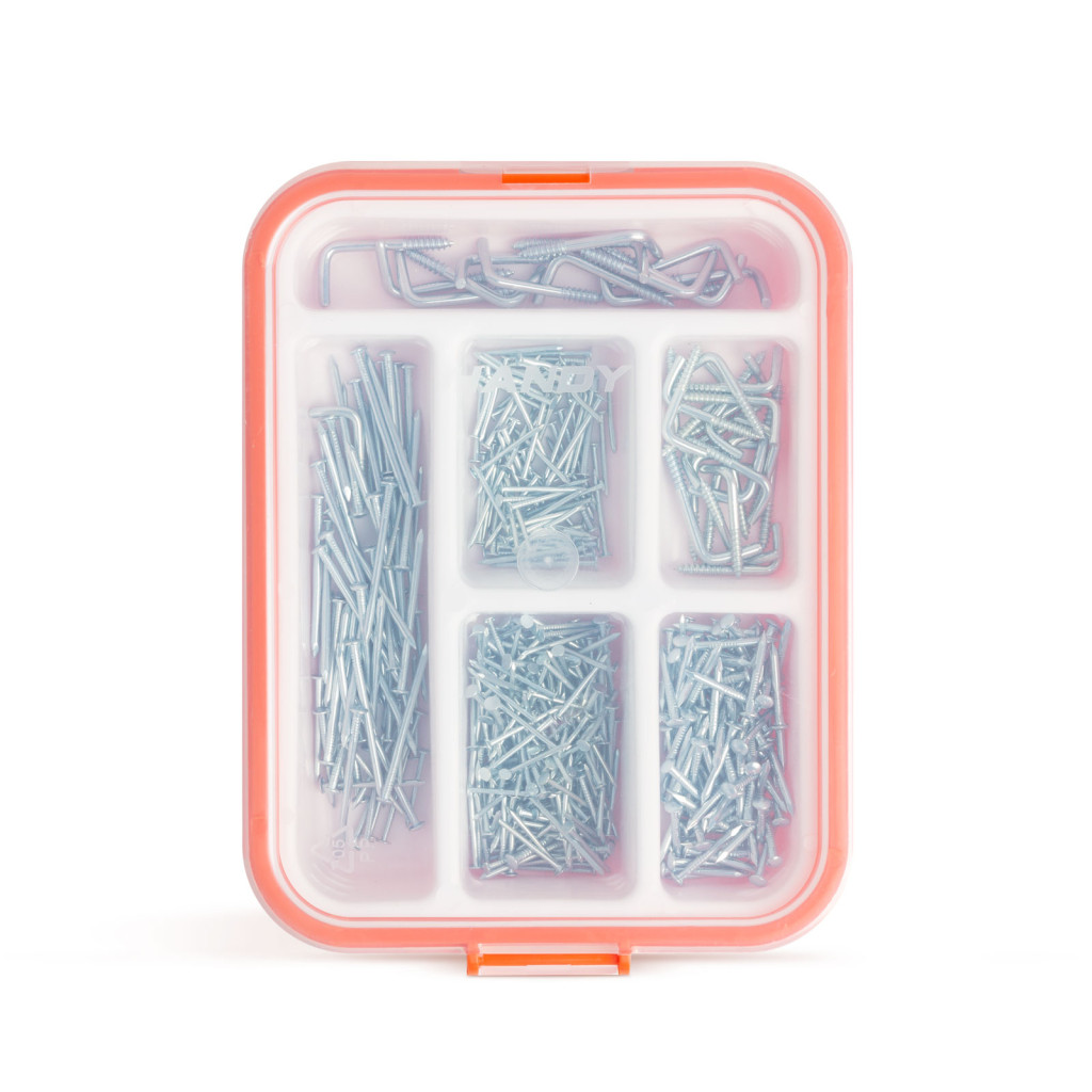 Minden háztartásban szükség van általános barkács termékekre. A szög bármely rögzítési feladat alapkelléke. Használhatja faanyagok egymáshoz illesztéséhez, de kiváló lehet fali képek, óra felfogatására is. Utóbbi feladatokhoz használhatja a szettben található akasztókampókat is. Az átlátszó tetővel rendelkező doboz kiváló áttekinthetőséget biztosít.