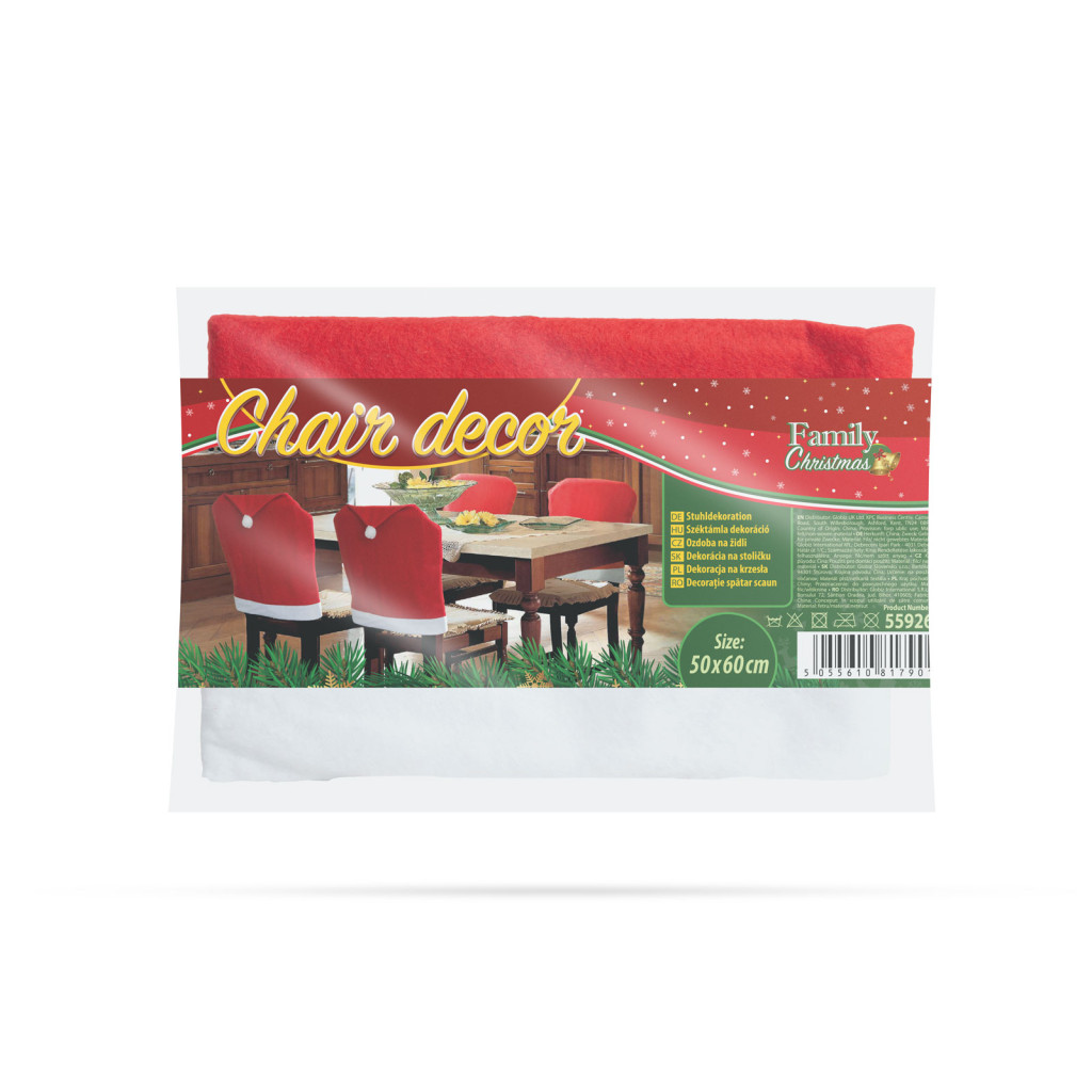 Mikulássapka formájú székdekoráció az ünnepekre.