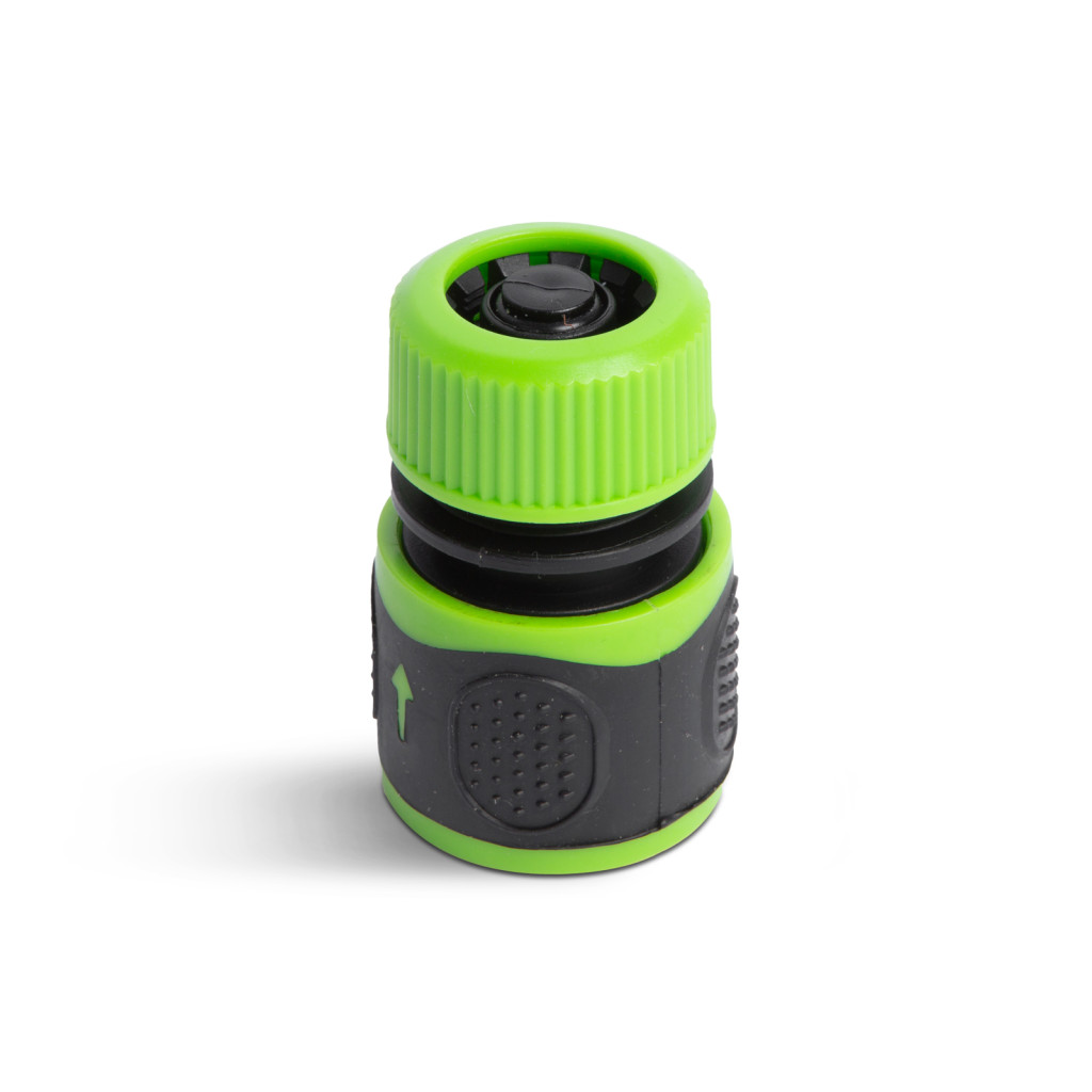 Gyorscsatlakozós kimenettel rendelkező tömlőcsatlakozó, amely 1/2"-os tömlőkkel kompatibilis. A gyorscsatlakozó STOP funkcióval rendelkezik, így a nyomás alatt lévő tömlőből nem folyik ki a víz, csak amikor Önnek szüksége van rá.