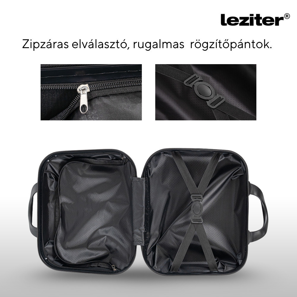A Leziter TraveLux Pro neszeszer strapabíró, könnyű ABS műanyagból készült, amely ellenáll a külső behatásoknak, nyomásnak és a karcolásoknak is. A keményfedeles kialakítás megbízható védelmet nyújt a benne tárolt eszközöknek – még akkor is, ha sietve pakolsz vagy mozgalmas úton vagy.